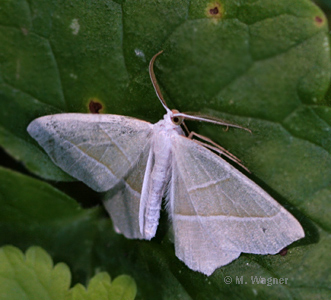 nachtaktive Perlglanzspanner lebt in Mischwäldern, da sich die Raupen